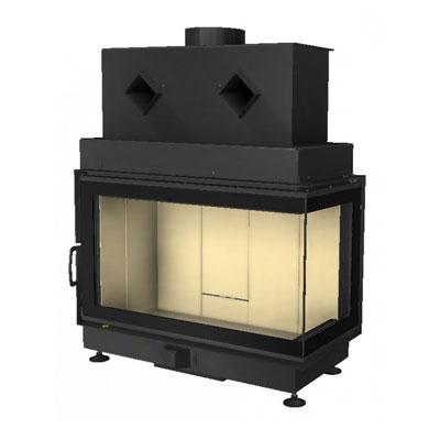 Дверна рама виготовлена з цільногнутого профілю, що забезпечує більшу надійність і довговічність топки. Велике кутове правостороннє жаростійке скло, виготовлене з склокераміки Schott Robax, яка витримує температуру - до 760 °С і дозволить Вам насолоджуватися горінням вогнища.